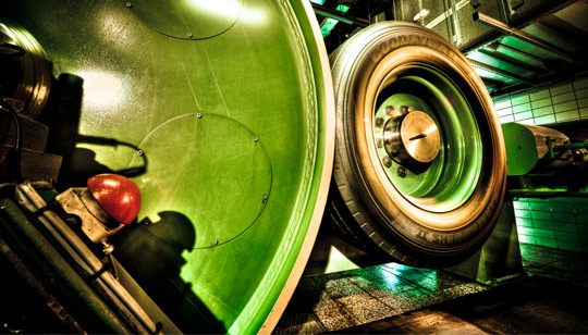 您輪胎的橡膠中混合了高達30種原料,原料的比例取決于輪胎的性能目標。它是由多種類型的橡膠,填充料及其它原料構成,在被稱為班伯里密煉機的巨型攪拌機中把它們混合在一起,生產出一種將用于壓延的黑色的粘性的膠料。壓延
